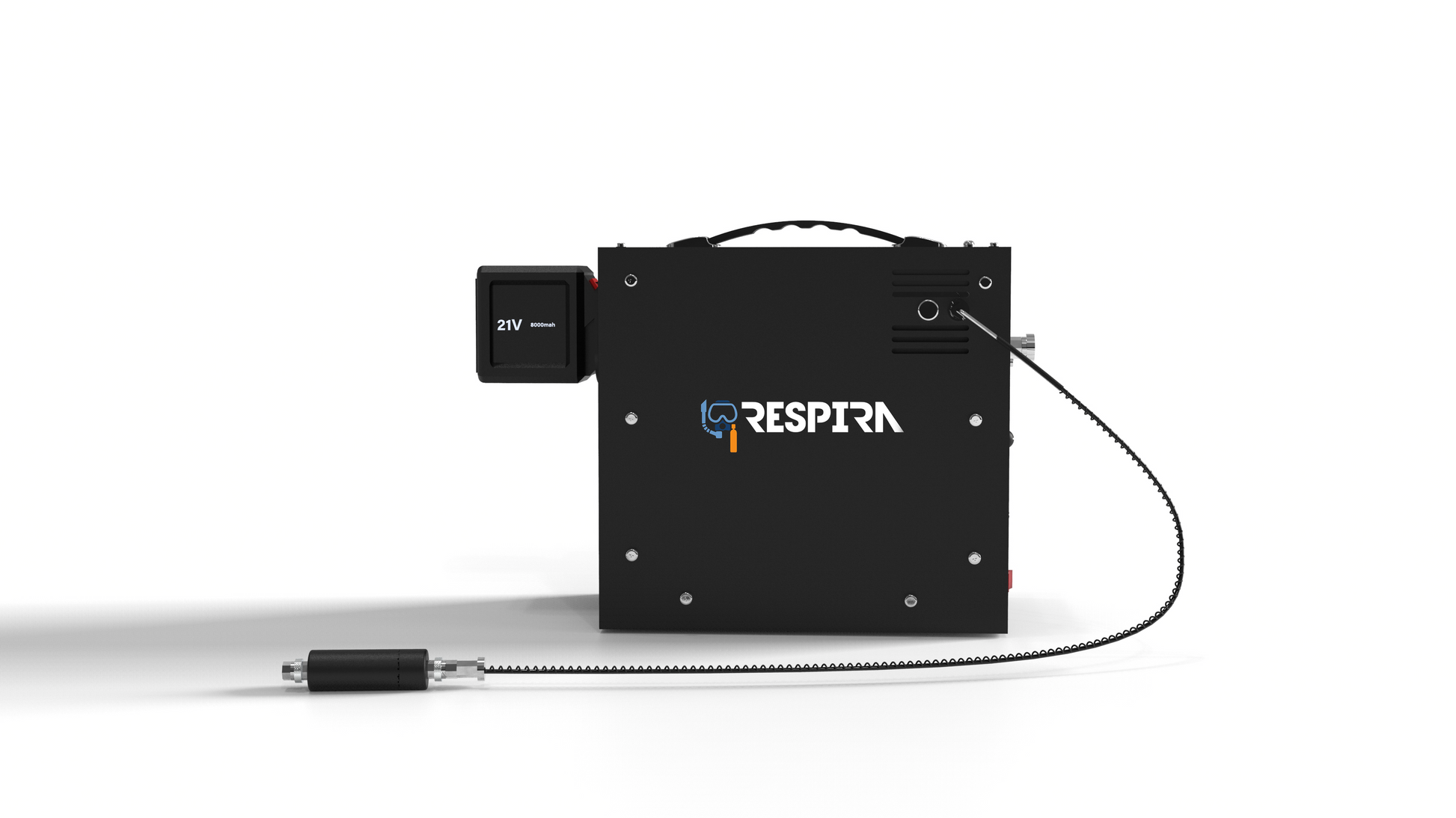 The JetCharge Compressor is a portable, battery-powered refill station designed for your Respira mini diving tanks. Refill your tank anywhere, in just minutes — no hassle, no limits.